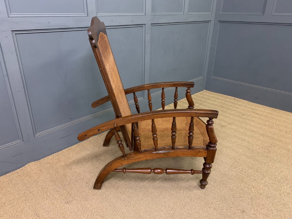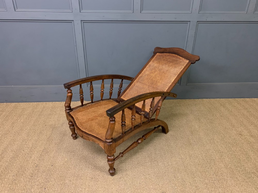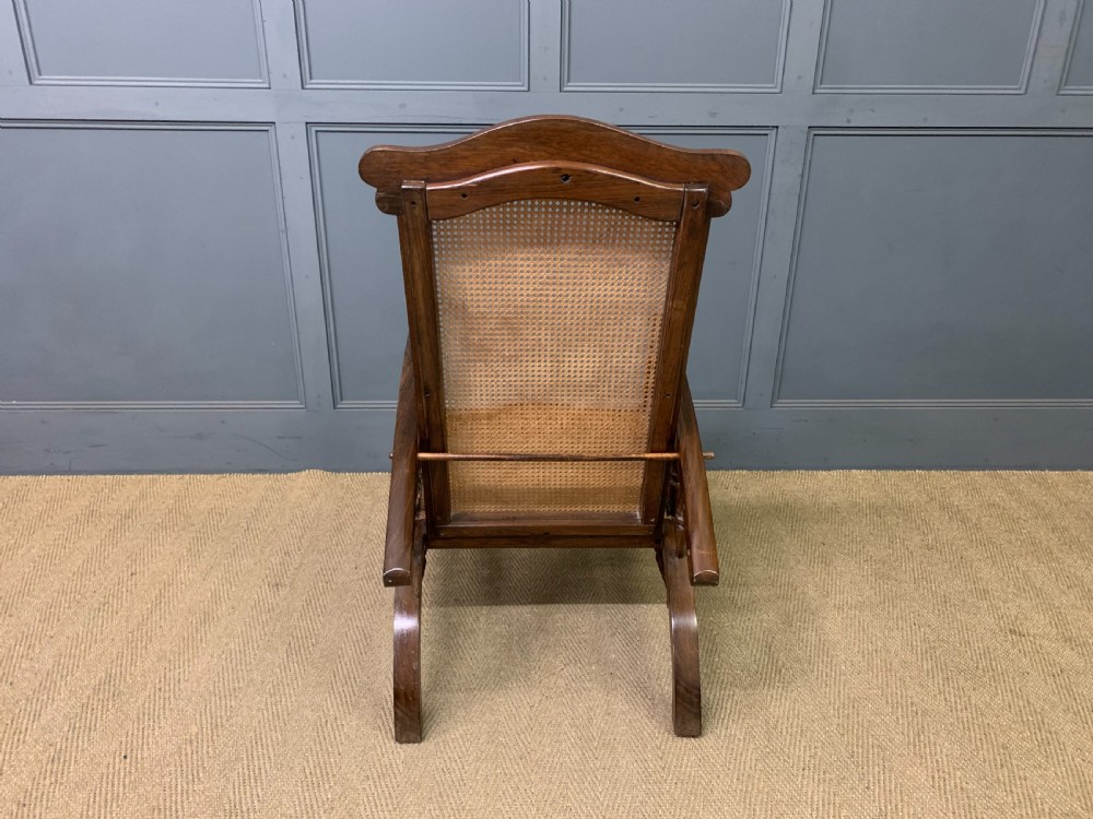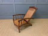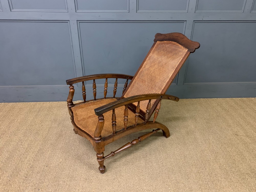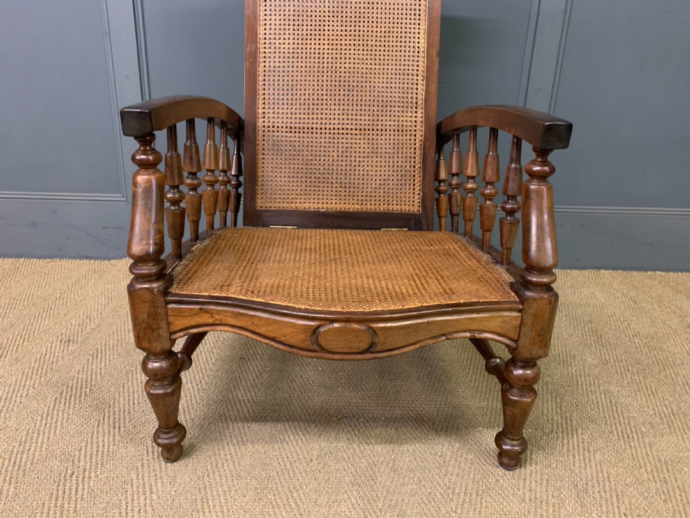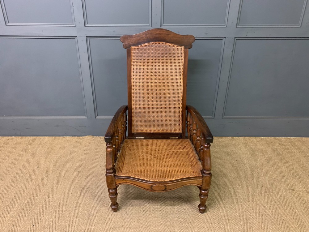 A delightful 19th century reclining plantation armchair. Colonial, most likely Anglo-Indian. Well constructed in solid teak and with its original wicker work in place (in very good order). The chair back can be set in 3 different positions. Cleaned and waxed in our workshops and now offered for sale in very good condition. Some minor imperfections.