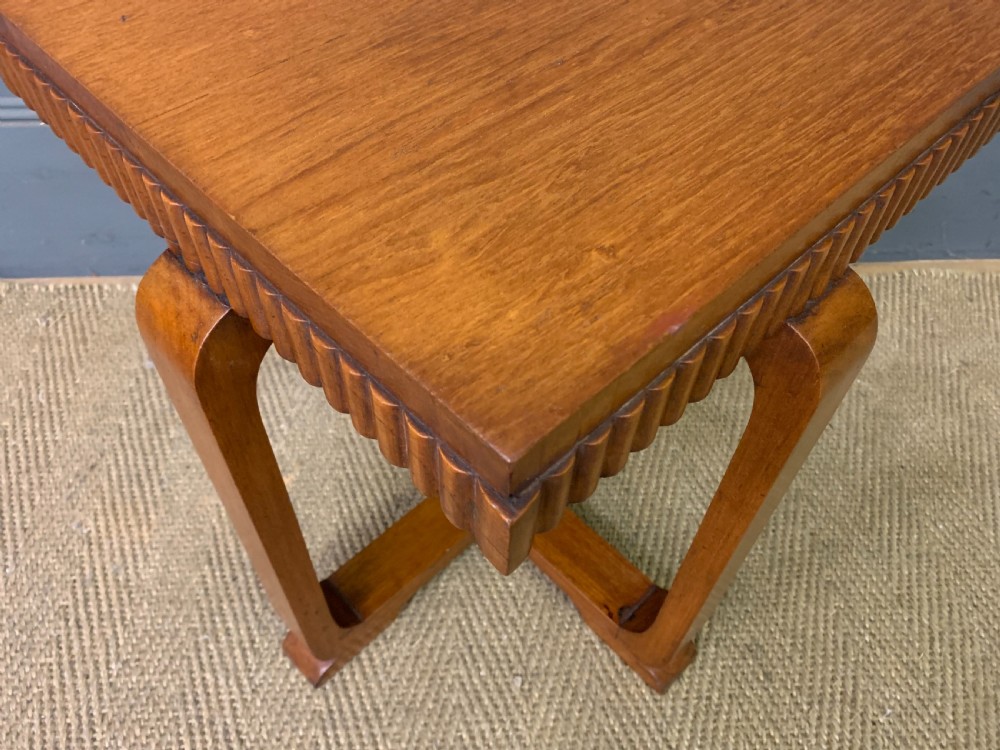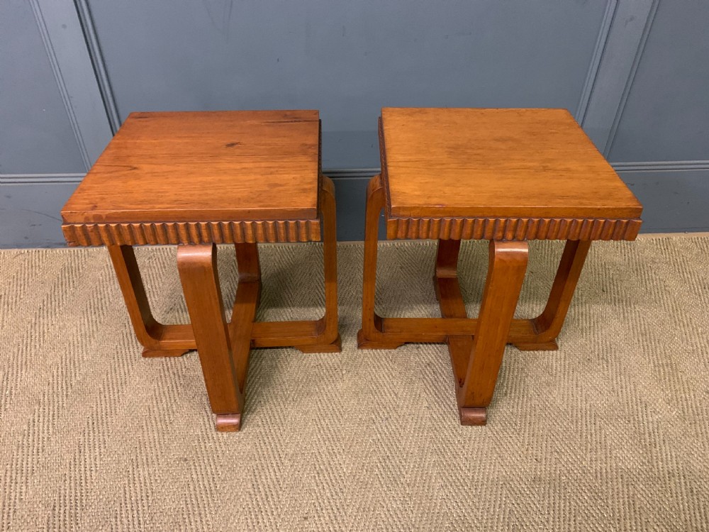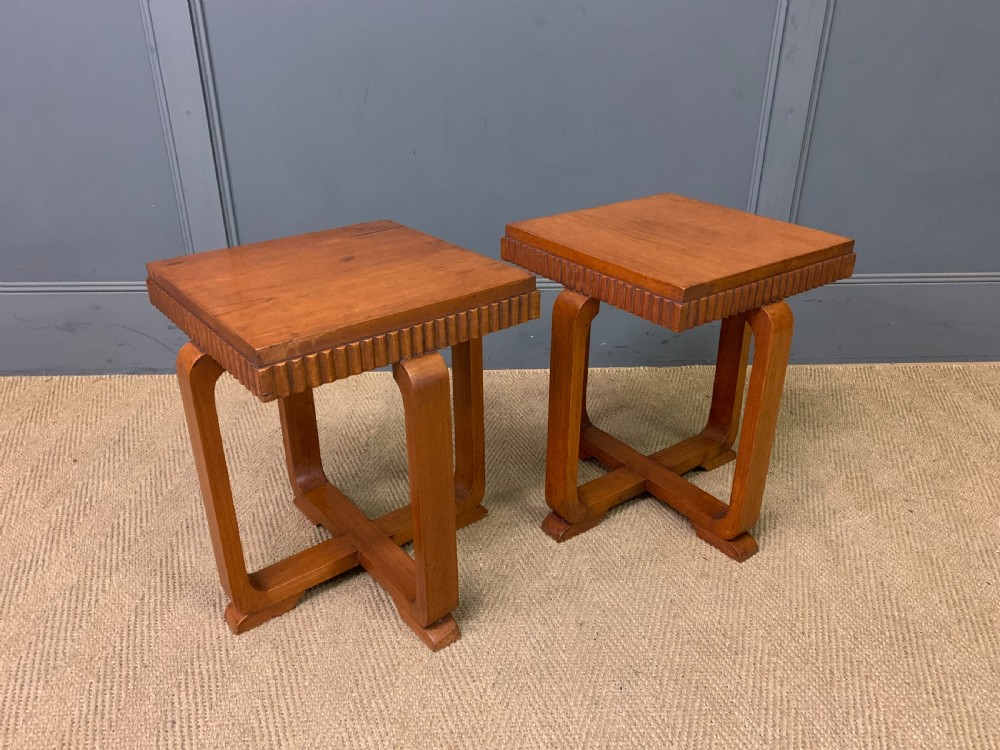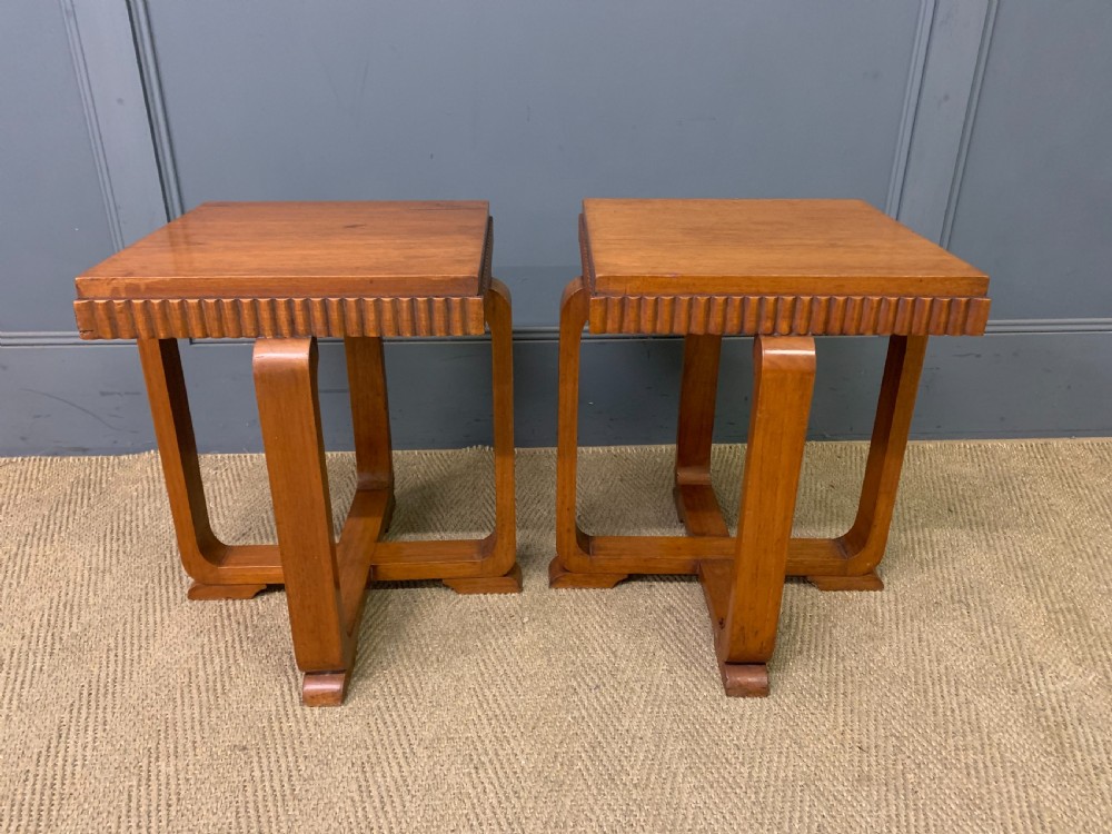 A lovely pair of Art Deco period lamp , or coffee, tables in solid walnut. With style features redolent of the period. Sympathetically repolished in our workshops and now offered for sale in excellent condition. With a great colour and finish, ready to go straight into the home.