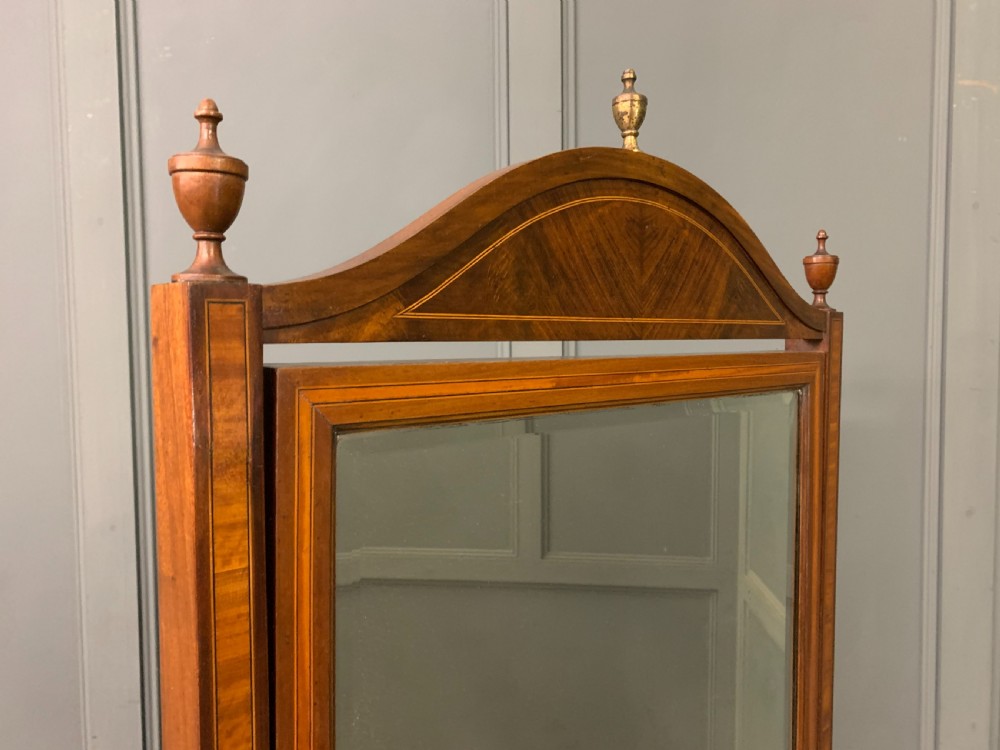 Inlaid Mahogany Sheraton Revival Cheval Mirror