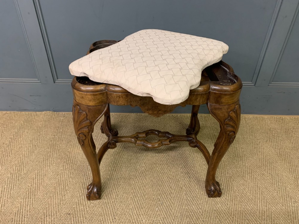 Queen Anne Style Burr Walnut Stool