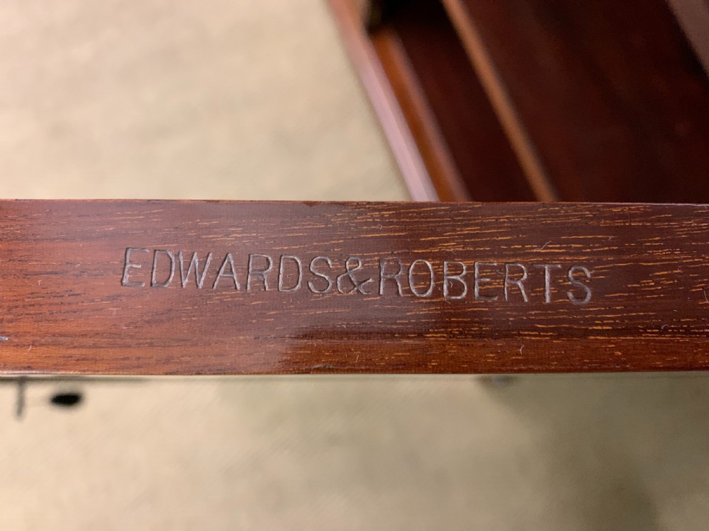 Edwards & Roberts was founded in 1845, and had premises at 21 Wardour Street London. By 1892 they occupied more than a dozen buildings in Wardour Street, where they continued to trade until the end of the century. They became one of the leading London cabinet makers and retailers working in a variety of styles, both modern and revivalist. Their business also involved retailing, adapting and restoring the finest antique furniture and there are many examples of their earlier furniture with later embellishments bearing their stamp. Edwards & Roberts specialized in marquetry, inlay and ormolu. Internal Ref: 18377
