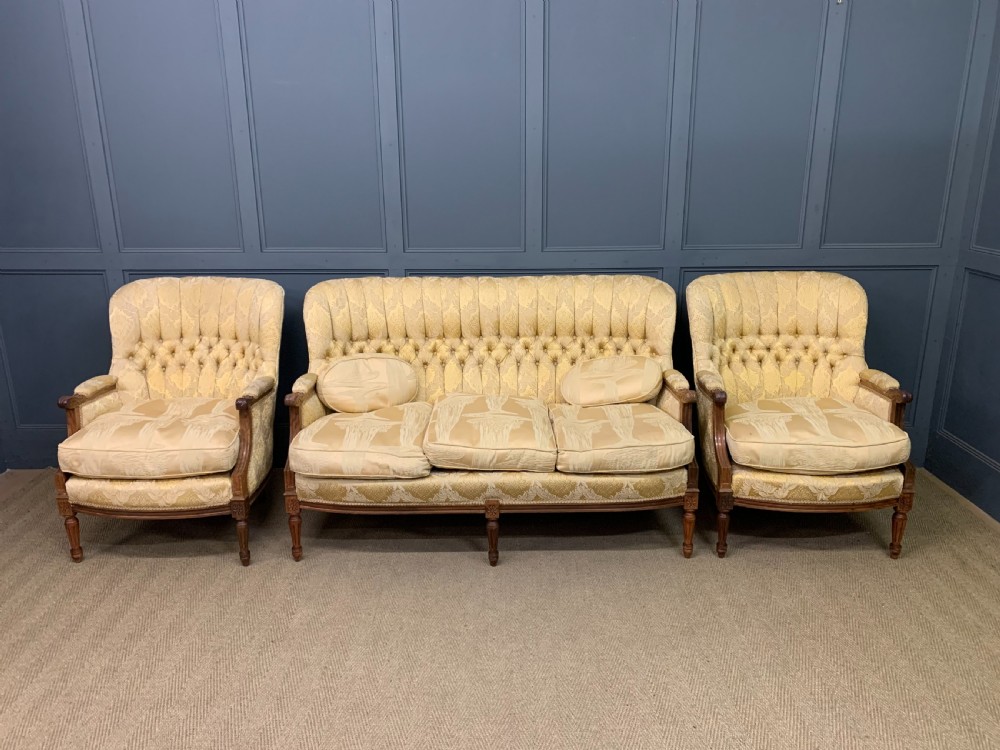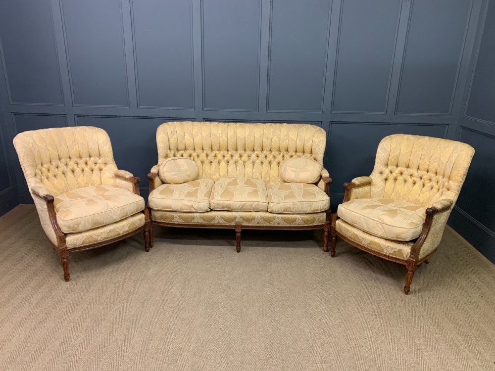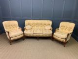 French Walnut Upholstered 3 Piece Salon Suite