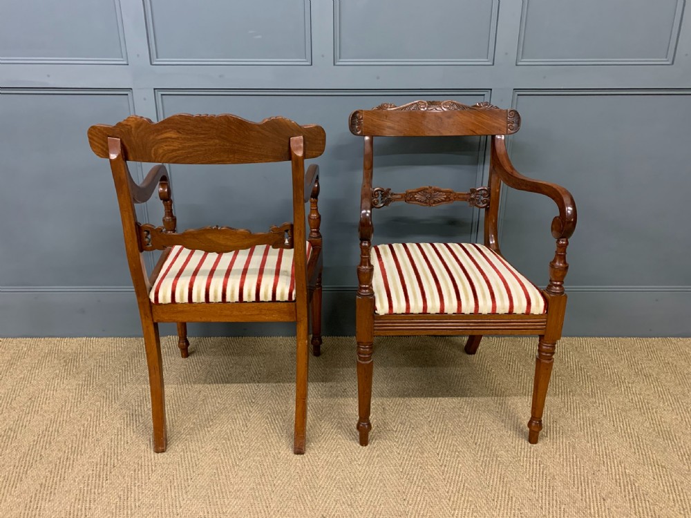 A splendid set of 10 William IV period mahogany dining chairs. Comprising of a pair of armchairs and 8 side chairs. Of excellent construction in solid mahogany and with recently reupholstered drop in seats. Of bar back form, with carved detailing to the backs. Offered for sale in excellent condition, with a warm colour and patina, ready to go straight into the home.