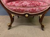An ornate late Victorian period mahogany upholstered armchair. Fitted with lovely ormolu mounts. Offered for sale in good original condition.
